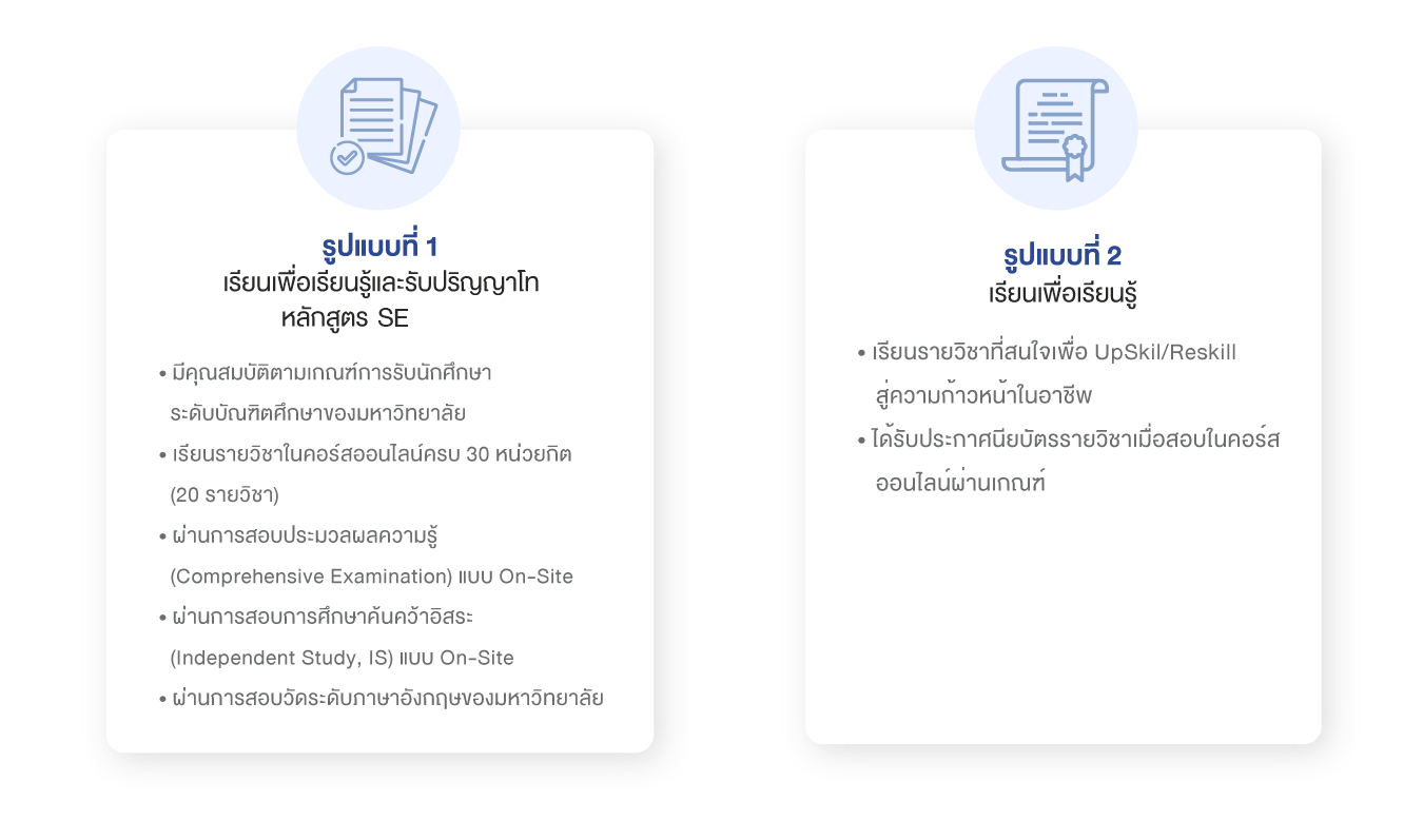 เนื่องจากการศึกษารายวิชาของหลักสูตรเป็นแบบคอร์สออนไลน์สามารถเรียนเวลาใดก็ได้
